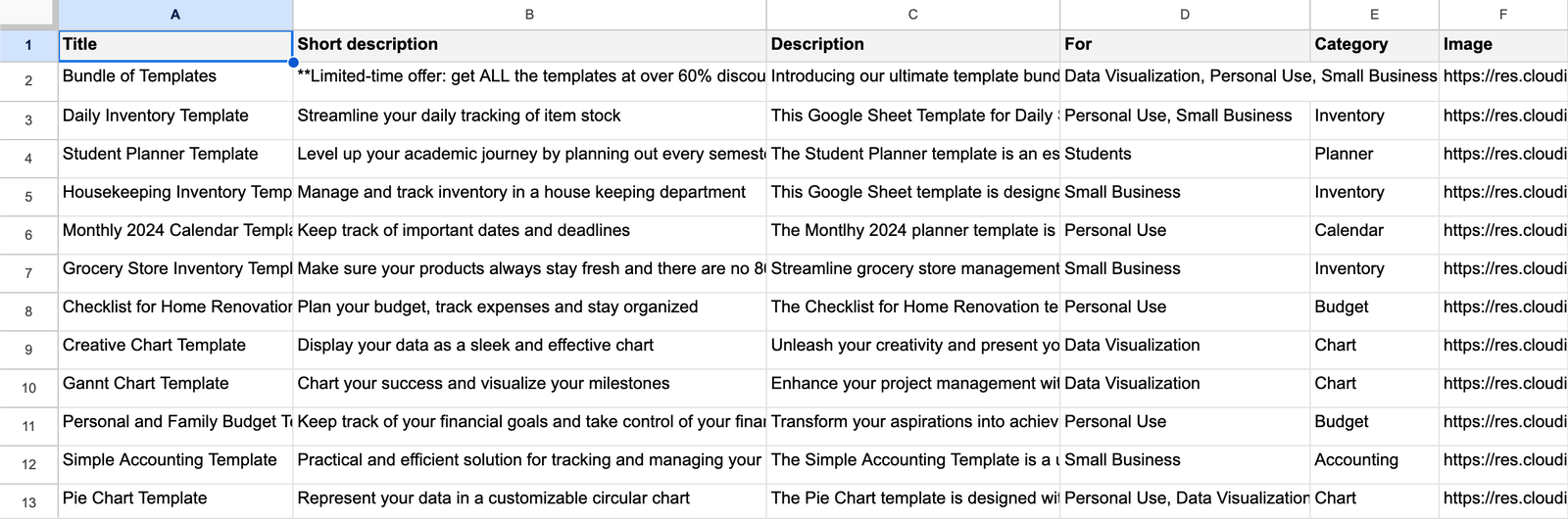 If you already have a Google Sheets document with all the data you want to show on your website, then you can just upload it to SpreadSimple. Otherwise, just use one of the pre-built templates and enter your data into an automatically generated Google spreadsheet.