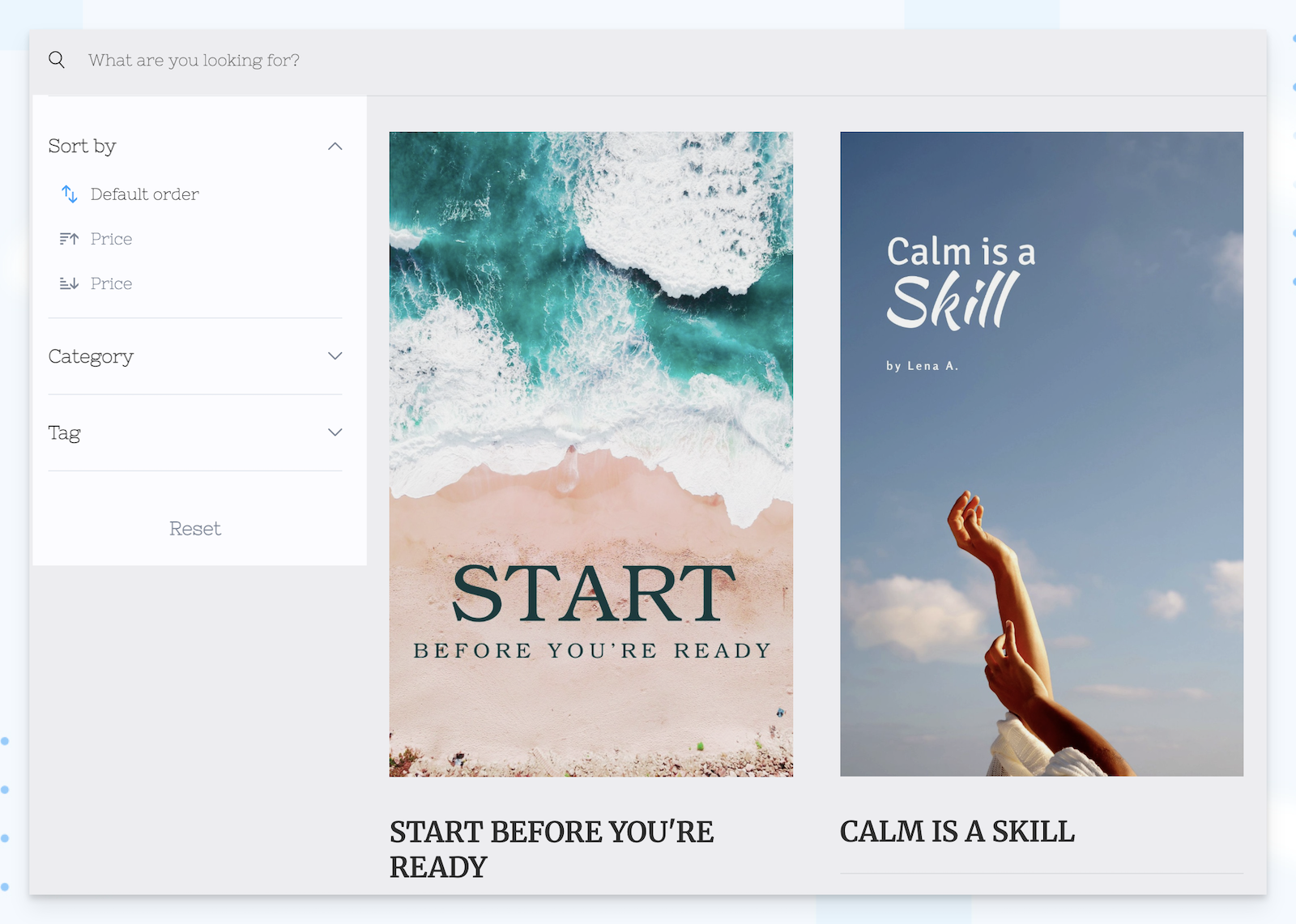 To give your websites a cleaner look, the sidebar filters and sorting can be collapsed by default. This way, they won’t take up extra space, and your visitors can expand them only when needed.