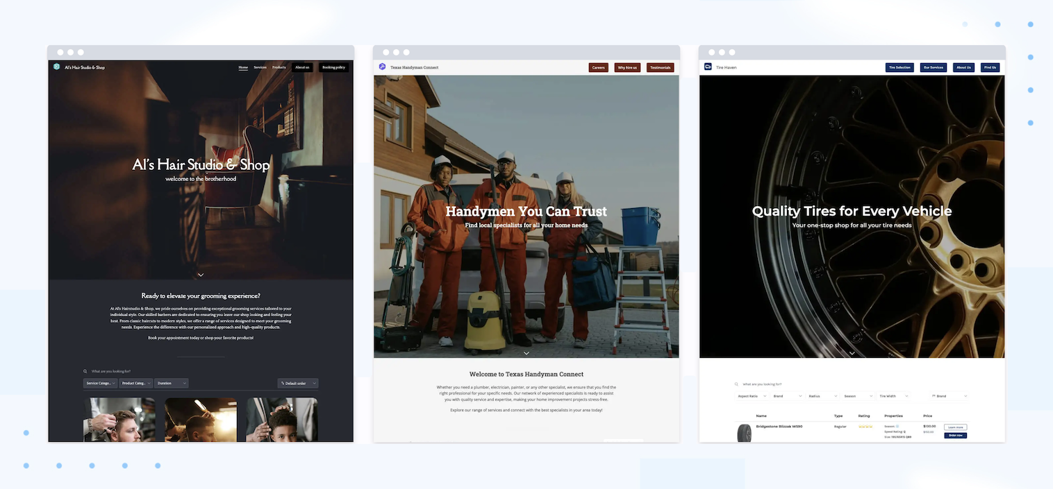 Designed for barbershops and beauty parlors, this template makes it easy to showcase both your services and products. With features like stock limitation and a Calendly add-on, your customers can easily book appointments and shop products directly on your website.