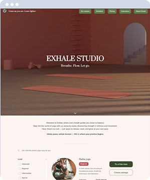 2. Choose the Yoga Studio template. Pick the ready-made Yoga Studio template. It's built specifically for yoga businesses and comes with all the key pages you need — schedule, pricing, instructor bios, and more.
