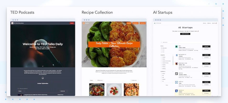 Ted Podcasts, Recipe collection, and AI startups catalog are ready to use in your workspace.