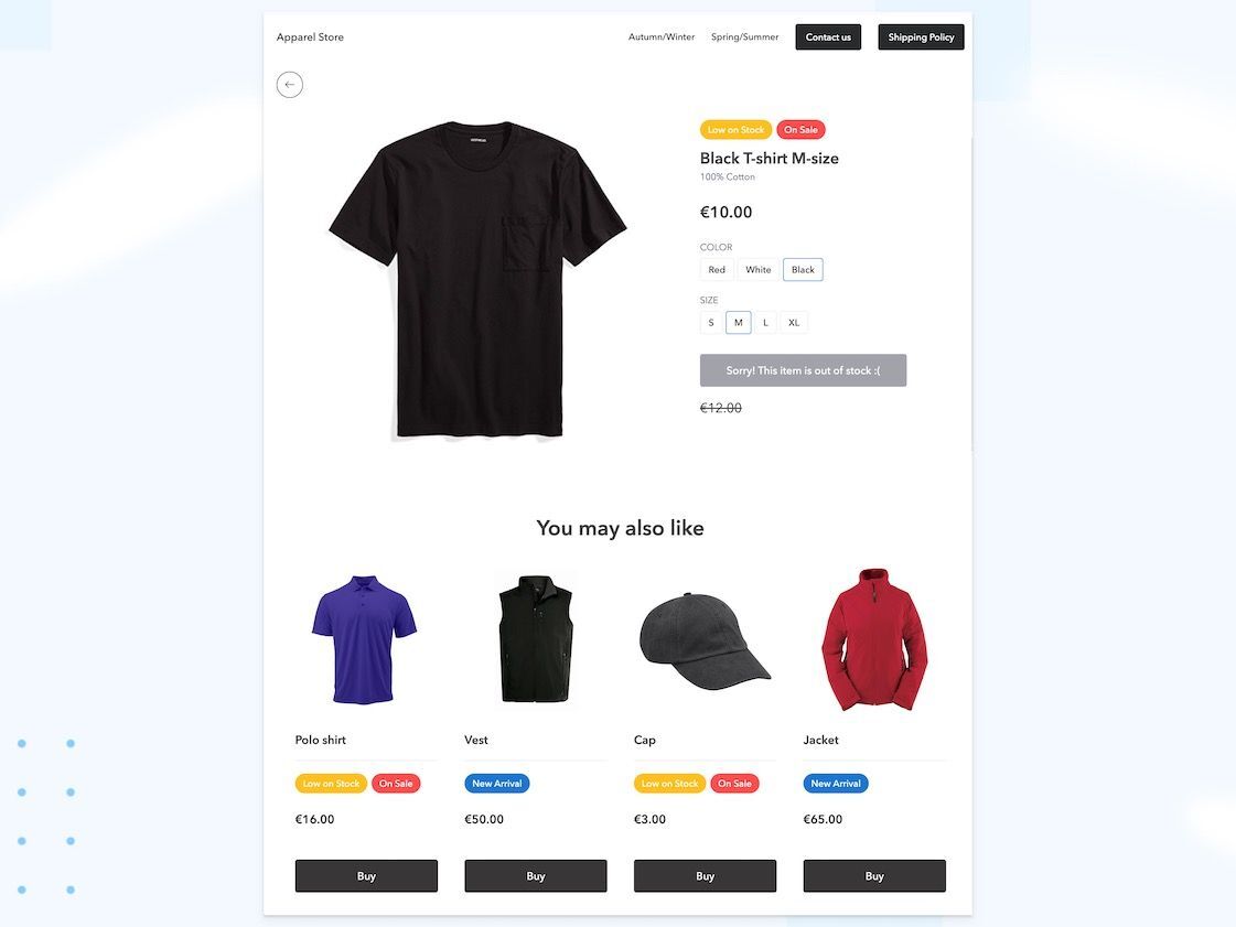 Offer your customers related products on details pages and help them discover items outside of their initial search. Specify which products to display and customize how they are arranged on the page.